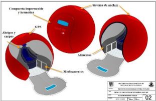 Uno de los autores de esta propuesta, el ingeniero Eleazar Chuchón Angulo, explicó que el refugio tiene la forma de una esfera, hecha a base de fibra de vidrio, con un diámetro de 1.40 metros, y permite a la persona que ingrese en su interior sobrevivir por lo menos 48 horas, hasta que sea rescatada.