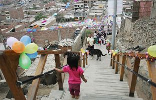 Como parte del programa Barrio Mío, la alcaldesa de Lima, Susana Villarán, entregó 16 pasajes-escaleras y un muro de contención a los vecinos y vecinas de Ate, a fin de mejorar la seguridad y condiciones de vida en las zonas altas de ese distrito.