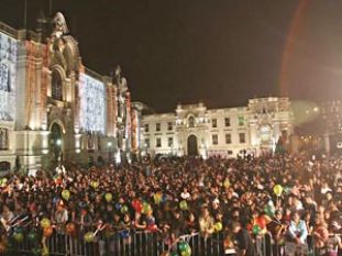 A las 19:00 horas de la noche de ayer Palacio de Gobierno abrió las puertas a todos los limeños para participar en la gran fiesta en la Plaza de Armas, y así recibir el nuevo año 2010.